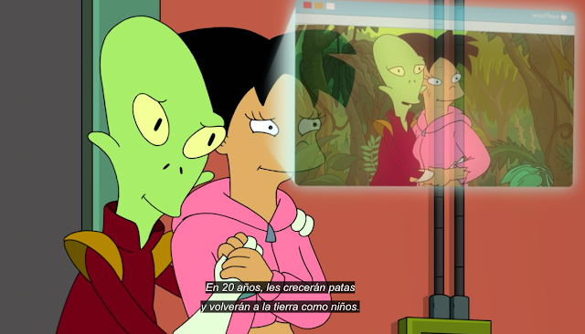 ¿Leela podría ser madre en el futuro? Al principio ella pasa de la historia de Amy, va pedo y le resbala todo. Pero luego, ay luego, como que ejercer de tía no se le da nada mal.
