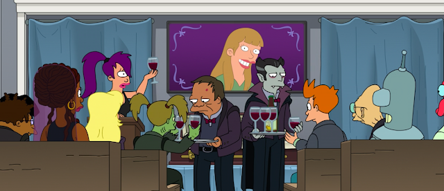 Fry quiere pedirle matrimonio en el Vampire State Building, en alusión al Empire State Building, escenario de momentos románticos como el de Algo para recordar, la peli con Tom Hanks y Meg Ryan. Janos, el camarero, obviamente es un vampiro.